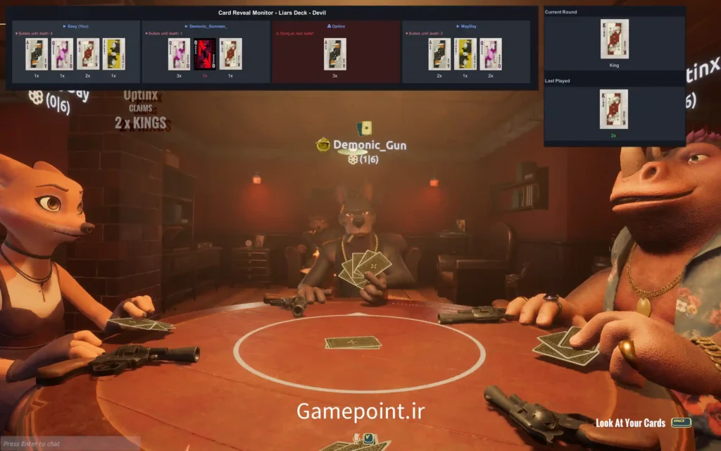 بازی Liar’s Bar دارای چندین گیم مود مختلف است که هر کدام تجربهای متفاوت را برای بازیکنان به ارمغان میآورد. برخی از این گیم مودها عبارتند از: